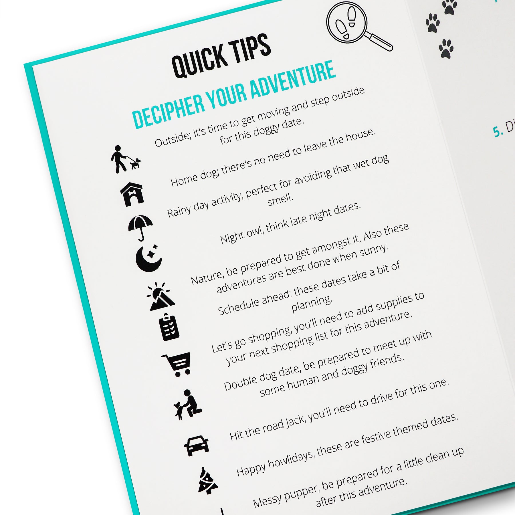 The Doggy Date Bucket List Book is a challenge for all our furry friend families that want to give their dog the best, funnest life possible. It's about making sure that we create an abundance of fun memories, and making sure your pooch feels apart of the family. We have created this date challenge book to help inspire you to engage in new and enriching situations for both you and your dog. Not only will this help create lifelong memories, but it will also ensure that you are enriching your dog both mentally and physically, giving them the best life possible.